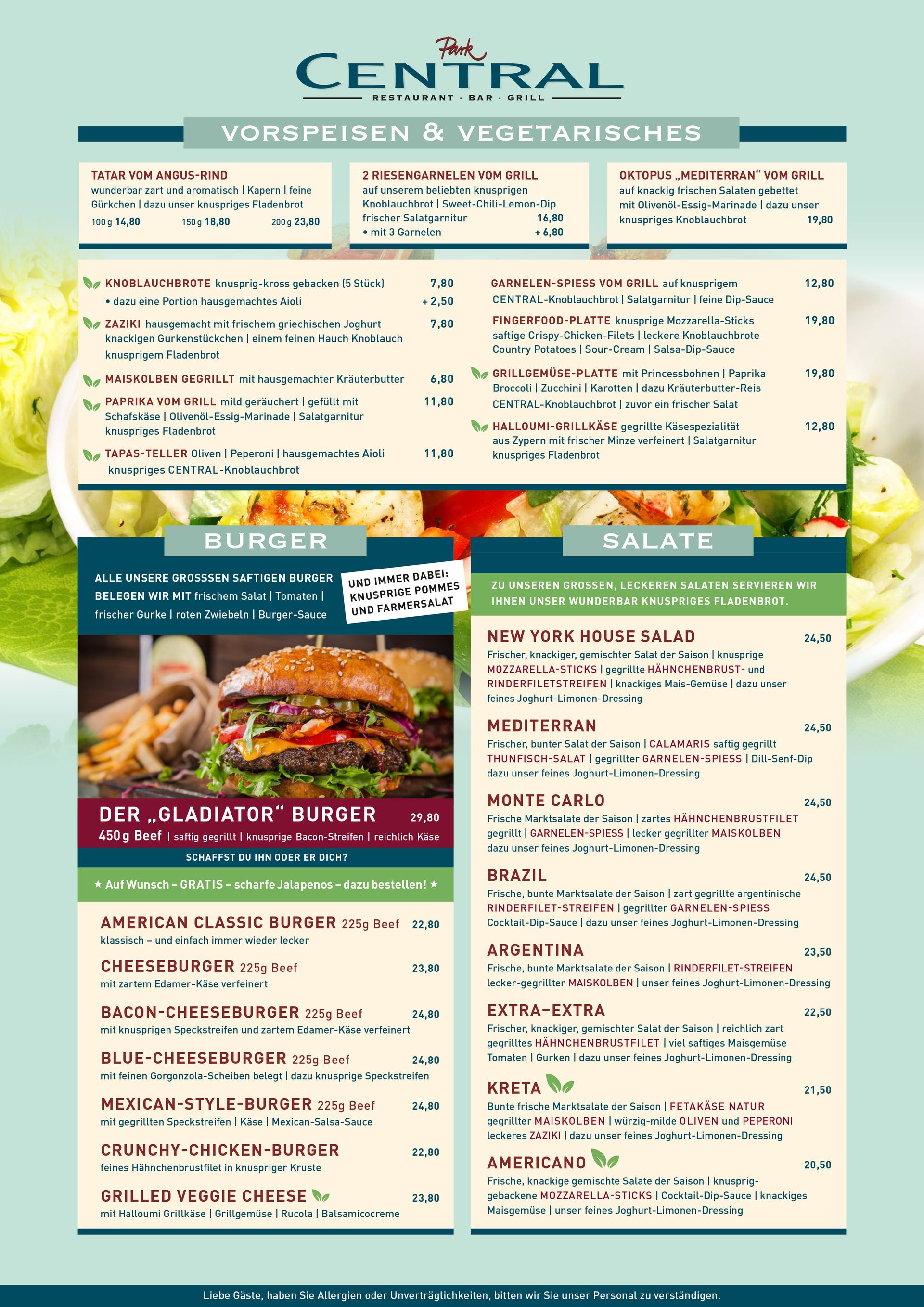 PARK CENTRAL WENDELSTEIN – UNSERE SPEISEKARTE